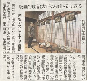 福西本店での「想いを競う三つの作品展」を福島民報に掲載いただきました。